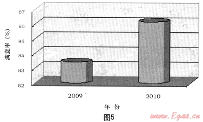 圖5為我公司2009/2010年第三方測評抄表業(yè)務滿意度變化圖。我們從圖5可以看出,自從推廣了一報一抄抄表模式后,大大減少了入戶次數(shù),抄表擾民系數(shù)降低,得到了廣大用戶的認可。由第三方開展的客戶滿意度調(diào)查結(jié)果顯示,2010年的抄表業(yè)務客戶滿意度從2009年的83.42%提升到86.16%,上升近3個百分點。