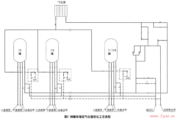 摘要:分析了現(xiàn)有儲(chǔ)罐自增壓工藝流程、作用及維護(hù)需要的投入情況,討論了采用優(yōu)化工藝流程后儲(chǔ)罐的正常運(yùn)行及節(jié)約費(fèi)用和減少安全隱患等。關(guān)鍵詞:城鎮(zhèn)燃?xì)?;LNG儲(chǔ)罐;自增壓;工藝流程;