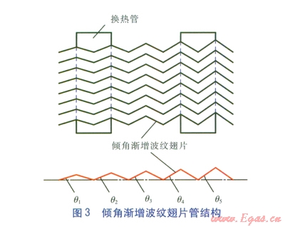 關鍵詞:波紋翅片管換熱器 均勻傾角波紋翅片 傾角漸增波紋翅片