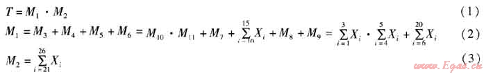 含有基本事件X21、X22、……、X26的最小徑集為1個,該徑集P3包含的基本事件數(shù)是6個,則由式(4)得基本事件X21、X22、……、X26的結(jié)構(gòu)重要度系數(shù)為: