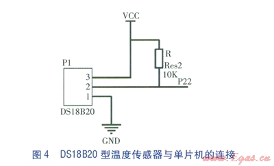DSl8820型溫度傳感器是由美國DALLAS公司生產(chǎn)的單總線數(shù)字式智能溫度傳感器,測溫范圍為-55~125℃,具有獨(dú)特單總線(地址線、數(shù)據(jù)線、控制線合為一條信號(hào)線)接口方式,僅需要一根信號(hào)線就可以與STC89C52型單片機(jī)連接,實(shí)現(xiàn)雙向通信。DSl8820型溫度傳感器與單片機(jī)的連接見圖4。引腳1為地線接口,引腳2為數(shù)據(jù)通信線接口,引腳3為5 V電源線接口。
