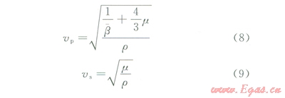 式(8)和式(9)中m為巖石的剪切模量,且有干燥巖石和飽含流體巖石的剪切模量相同。