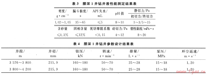 腰深1井鉆井參數(shù)設(shè)計結(jié)果如表4所示。