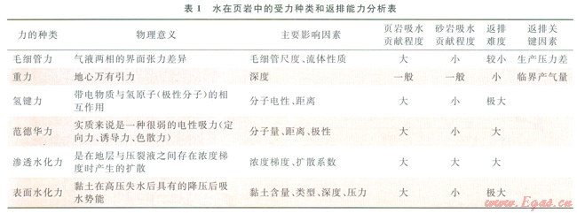 1 水在頁(yè)巖中受力分析和返排特征