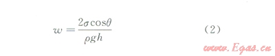 重力本質(zhì)上是由地心萬(wàn)有引力產(chǎn)生的,由于頁(yè)巖儲(chǔ)層較厚,壓裂液返排過(guò)程中毛細(xì)管力與重力同時(shí)以阻力的性質(zhì)發(fā)生作用。假設(shè)裂縫寬度為w,高度為h,壓裂液與頁(yè)巖的表面張力為s,接觸角為q,壓裂液的密度為r,存在一個(gè)毛細(xì)管壓力與重力接近的臨界寬度w,即