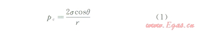 式中pc為毛細(xì)管力,Pa;s為界面張力,N/m;r為毛細(xì)管半徑,m;q為潤(rùn)濕接觸角,(°)。