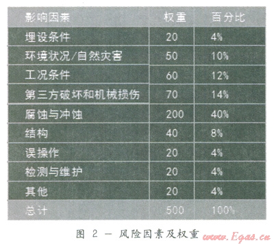 風(fēng)險(xiǎn)評(píng)價(jià)實(shí)施過(guò)程中,需要收集以往海管泄漏事故的資料,分析事故原因,找到主要威脅因子。確定各個(gè)威脅因子在模型中的權(quán)重調(diào)整參數(shù)。