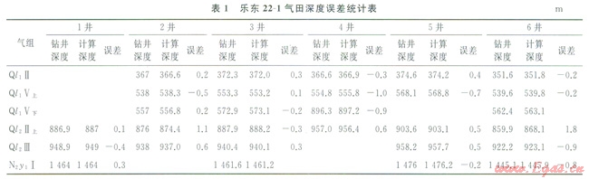 對(duì)該區(qū)速度譜有了清晰的認(rèn)識(shí)后,分兩部分進(jìn)行速度分析。在“模糊區(qū)”外主要解釋了高分辨率二維地震速度譜,在“模糊區(qū)”內(nèi)主要用1993年常規(guī)二維地震測(cè)線的道集和部分l996年高分辨率二維地震資料進(jìn)行交互速度分析拾取。速度體的建立[6]要經(jīng)過(guò)速度解釋、數(shù)字化輸入等多個(gè)環(huán)節(jié),難免會(huì)出現(xiàn)一些差錯(cuò),為了解決這一問(wèn)題,使建立的速度體更加準(zhǔn)確可靠,采用“INDEPTH”軟件的速度監(jiān)控功能對(duì)速度資料進(jìn)行了質(zhì)量控制。較好地從點(diǎn)、線、面上找出野值或不合規(guī)律的值,經(jīng)質(zhì)量控制后,消除這些野值和奇異點(diǎn),使地震速度更加準(zhǔn)確可靠,對(duì)比各井VSP速度與井旁地震速度譜速度發(fā)現(xiàn),兩種速度非常接近,雖然仍有一定的誤差,但已完全可以滿足精度要求。把經(jīng)質(zhì)量控制后的速度數(shù)據(jù)進(jìn)行格式轉(zhuǎn)換,用“EARTHVISION”軟件進(jìn)行三維網(wǎng)格化(網(wǎng)格間距為250m×250m×20ms),再用6口井的VSP速度進(jìn)行校正,獲得了準(zhǔn)確可靠的地震速度體[10]。將該速度體轉(zhuǎn)換的深度構(gòu)造圖與井點(diǎn)實(shí)鉆進(jìn)行比較,其絕對(duì)誤差最大為l.8m,精度較高(表1)。