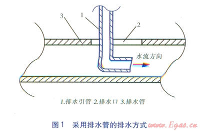 在原來設計需開挖排水溝的位置,敷設排水管代替排水溝。在對應排水點位置的排水管上開設排水口,用排水引管將排水引入排水口(見圖l)。排水口應大小合適,不能太小,以便觀測排水引管排出水的流量、顏色。排水引管末端應采用彎管形式(見圖l),以便引導帶壓熱水按指定方向排放,避免熱水濺出燙人。這種改進措施不僅施工方便,還杜絕了排水溝向電纜溝的滲流現(xiàn)象,更杜絕了敞開式排水溝引起的站內空氣相對濕度過大問題。