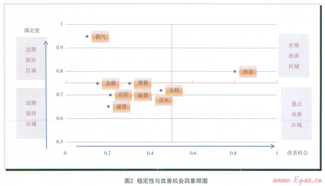 根據(jù)燃?xì)馄髽I(yè)的資源現(xiàn)狀,各個(gè)服務(wù)項(xiàng)目滿足客戶需求的程度不一樣。可將需求的滿足程度分為較好滿足、基本滿足、有待提高3個(gè)梯度。