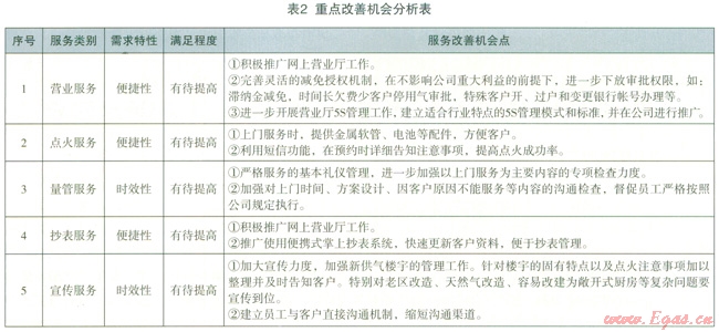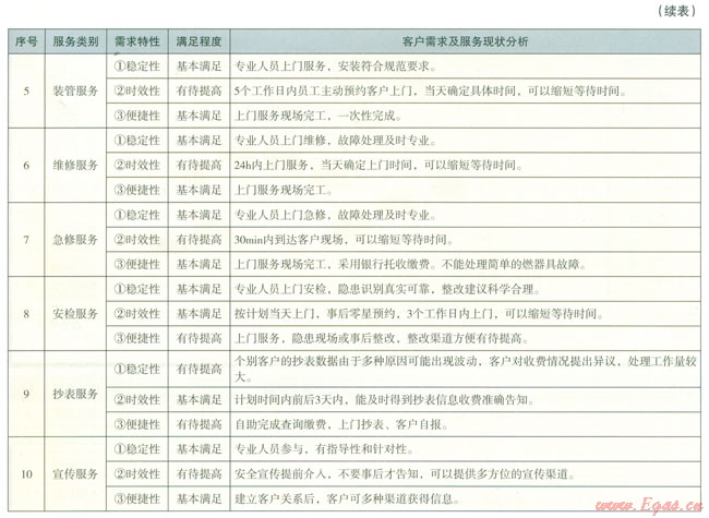 以客戶需求分析為導(dǎo)向的服務(wù)改善促進(jìn)機(jī)制,是通過(guò)卡諾模型和三環(huán)六步法等管理工具,細(xì)分客戶需求,結(jié)合企業(yè)服務(wù)現(xiàn)狀,尋找服務(wù)改善機(jī)會(huì),足以客戶需求為導(dǎo)向的管理理論與公司實(shí)際業(yè)務(wù)相結(jié)合的重要環(huán)節(jié),也是制定全年的重點(diǎn)服務(wù)工作和過(guò)程改進(jìn)體系的重要參考依據(jù)。“客戶需求分析”和“服務(wù)改善促進(jìn)機(jī)制”是以客戶需求為導(dǎo)向的管道燃?xì)鈨?yōu)質(zhì)服務(wù)模式從理論探索邁向?qū)嵺`的重要內(nèi)容和標(biāo)志。
