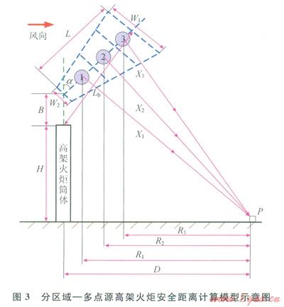 分區(qū)域 多點源高架火炬安全距離計算模型如圖3所示,計算步驟分為以下4個部分。