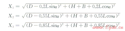 假設(shè)該目標物距高架火炬筒體水平距離為D,該目標物接收的熱輻射通量需疊加3個輻射點源在該目標點產(chǎn)生的總輻射熱通量(q),即