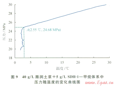 三元聚合物抑制劑SDH-l在VP/VC分子結(jié)構(gòu)基礎(chǔ)上引入了強親水性基團,以增加聚合物的水溶性。圖9、10反映了加入SDH-1后膨潤土漿中水合物的生成過程。