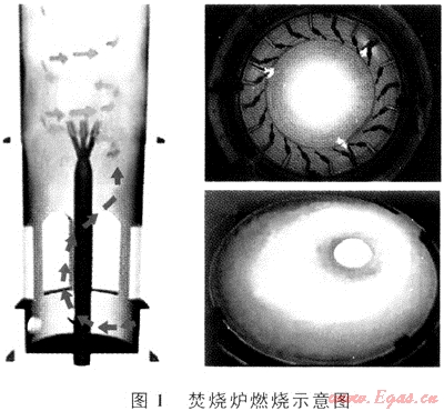 焚燒爐的工作原理是將原料氣引入燃燒器產生高速渦流,通過自然吸入空氣,使燃料氣和氧氣在爐內充分混合、燃燒,爐膛排出氣體以較高的速度沖高、向大氣擴散,減少高含硫氣井測試過程中對環(huán)境和人員的危害[1~2]。圖1為焚燒爐爐膛燃燒示意圖。