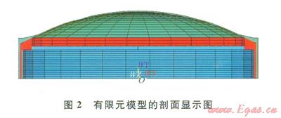 儲(chǔ)罐瞬態(tài)熱力分析模型包含穹頂和混凝土外罐墻。局部還有結(jié)構(gòu)的鋼內(nèi)襯板、玻璃纖維彈性氈、珍珠巖保溫材料和鋼筋混凝土承壓環(huán)。其穹頂厚度約為400mm。