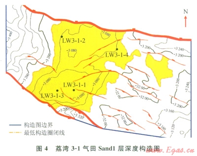 荔灣3-l構(gòu)造位于白云凹陷的東南部,處于南部隆起帶伸進(jìn)白云凹陷的鼻狀凸起上。該構(gòu)造靠近白云凹陷的中心位置,是一個(gè)在古近—新近系基底隆起七發(fā)育的受斷層控制的披覆背斜。受南部東西走向邊界大斷層的影響,該構(gòu)造至中中新世已經(jīng)成型,南部南掉大斷層和北部北掉大斷層形成構(gòu)造的南北邊界,東西兩側(cè)受披覆構(gòu)造控制。