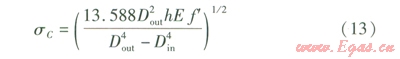 忽略由熱脹冷縮產(chǎn)生的二次應(yīng)力,彎曲變形管段的穩(wěn)定性判別式為: