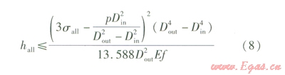式(7)可作為當(dāng)塌陷區(qū)地面出現(xiàn)沉降時(shí),判定發(fā)生彎曲變形管段是否穩(wěn)定的判別式,也可作為計(jì)算塌陷區(qū)允許沉降量的計(jì)算式。