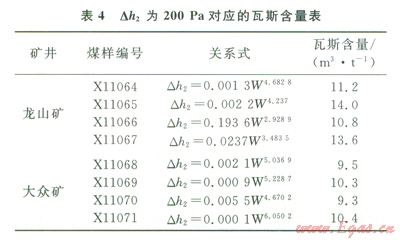4)實驗室研究了瓦斯含量和鉆屑瓦斯解吸指標Ah。的關系,龍山礦無煙煤Dh2為200Pa對應的瓦斯含量為10.8~14.0m3/t,最低為l0.8m3/t;大眾礦貧煤對應的瓦斯含量為9.3~10.4m3/t,最低為9.3m3/t。
