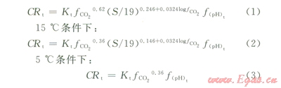 式中Kt為常數(shù),與溫度和腐蝕產(chǎn)物膜相關;S為管壁切應力,Pa;fCO2為CO2的逸度,bar;f(PH)t為pH值對腐蝕速率的影響因子。對于實際工況溫度下的腐蝕速率可通過在所測溫度及所規(guī)定溫度值問作線性插值得到。Norsok M506腐蝕模型是以實驗數(shù)據(jù)為基礎而建立的,對于腐蝕過程中化學及電化學反應的熱力學及動力學等機理考慮過少,可以用于預測材料的均勻腐蝕速率。