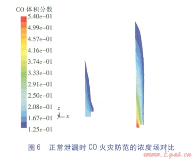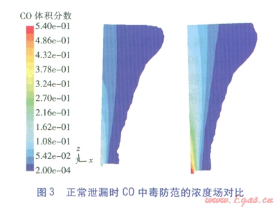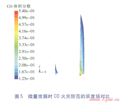 C0是CRG的主要叮燃組分,在12.5%~74.0%的爆炸極限范圍內(nèi)均可燃,且其密度與空氣相近,泄漏后較難快速散失,會(huì)混入地面空氣中產(chǎn)生橫向蔓延,因此研究考慮的C0防火控制體積分?jǐn)?shù)取其爆炸下限l2.5%,即低于該含量均屬安全。