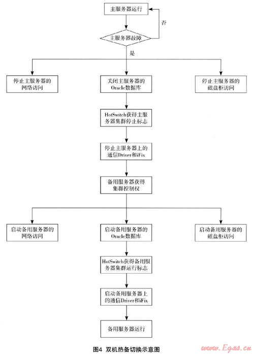 整個系統(tǒng)的切換由集群管理軟件和HotSwitch軟件管理,其關(guān)系如圖3。