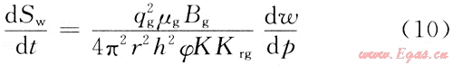由于氣井開(kāi)始生產(chǎn)后,地層壓力下降,水相開(kāi)始蒸發(fā),氣體中的含水量逐漸增加,在無(wú)邊底水的儲(chǔ)層中會(huì)造成地層含水飽和度的減小,因此有必要研究近井區(qū)含水飽和度的變化規(guī)律。