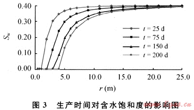 3.1 生產(chǎn)時(shí)間對(duì)含水飽和的影響