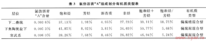 研究區(qū)氯仿瀝青“A”組成特征見表3。從表3中可見,