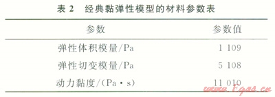 形成腔體模型后,需要對(duì)溶腔施加內(nèi)壓,通過施加法向應(yīng)力將儲(chǔ)氣庫(kù)內(nèi)壓分別設(shè)置為10MPa、15MPa、17MPa、20MPa、23MPa、25MPa和30MPa,選擇經(jīng)典黏彈性蠕變模型[8-9]計(jì)算在不同內(nèi)壓條件下溶腔不同直徑處的蠕變變形量。經(jīng)典黏彈性蠕變模型材料參數(shù)如表2所示。