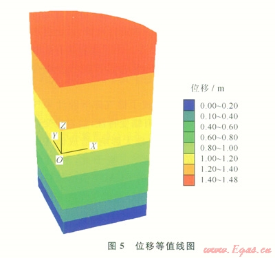 由圖4可以得出,該模型中最大不平衡力逐漸收斂至零,表示所建儲(chǔ)氣庫(kù)溶腔模型具有收斂性。由圖4、5可以看出,在建立的土體模型中,由于重力場(chǎng)的作用,最大位移和最大應(yīng)力分別出現(xiàn)在模型的最底部。