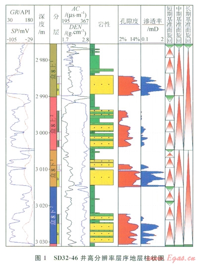 高分辨率層序地層學(xué)的核心是“在基準(zhǔn)面旋回變化過程中,由于可容納空間與沉積物補給通量比值的變化,相同沉積體系域或相域中發(fā)生沉積物的體積分配作用和相分異作用,導(dǎo)致沉積物的保存程度、沉積物堆積樣式、相序、相類型及演示結(jié)構(gòu)和組合類型發(fā)生變化”[19]。而等時層序地層格架的建立,則是為了對儲集砂體時空展布規(guī)律的三維預(yù)測和定量評價服務(wù)。其中各級沉積物的堆積樣式(包含沉積物自身形態(tài)及其疊置關(guān)系的三維展布形態(tài))以及砂體的預(yù)測及定量評價正是儲層構(gòu)型研究的主要內(nèi)容,此外各級次的構(gòu)型界面均是在三級層序內(nèi)部進行識別和劃分的。由此看來,基準(zhǔn)面旋回的變化對砂體的構(gòu)型有著重要的控制作用。