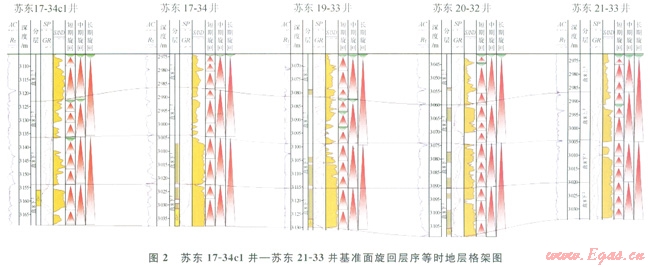 1)蘇里格氣田召30井區(qū)盒8段發(fā)育兩個長期基準(zhǔn)面旋回,4個中期基準(zhǔn)面旋回,12個短期基準(zhǔn)面旋回及若干超短期基準(zhǔn)面旋回,其中基準(zhǔn)面最高在盒8上亞段沉積初期,最低在盒8上亞段沉積末期。盒8段層序自下而上主要形成于可容納空間小于沉積物供給速率的基準(zhǔn)面緩慢上升和快速下降的地層旋回過程中,僅保存上升半旋回的向上“變深”非對稱型結(jié)構(gòu)(A型)的中、短期旋回結(jié)構(gòu)類型為主,反映出盒8段沉積時自下而上物源供給逐步穩(wěn)定,水體能量逐漸減弱的過程,與盒8段自下而上由辮狀河向曲流河轉(zhuǎn)變的這一特征相符。