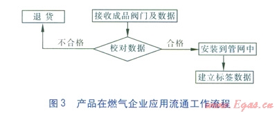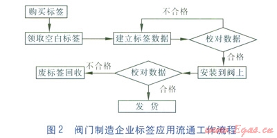 標(biāo)簽在閥門制造企業(yè)實現(xiàn)應(yīng)用流通的工作流程和產(chǎn)品在燃?xì)馄髽I(yè)應(yīng)用流通的工作流程見圖2、3。