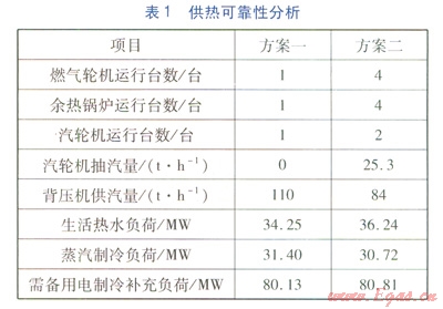 生活熱水負(fù)荷是通過余熱鍋爐尾部煙氣換熱獲取,方案一中6FA型燃?xì)廨啓C(jī)配套的l臺余熱鍋爐(單臺供生活熱水能力為37.2MW)尾部煙氣換熱量和方案二中LM6000PF型燃?xì)廨啓C(jī)配套的4臺余熱鍋爐(單臺供生活熱水能力為l2.96MW)尾部煙氣換熱量都能滿足生活熱水負(fù)荷的供給;汽輪機(jī)發(fā)生故障時,供應(yīng)蒸汽量減少,優(yōu)先滿足工業(yè)蒸汽負(fù)荷,剩余部分蒸汽轉(zhuǎn)換成制冷負(fù)荷約31MW,通過備用電制冷補(bǔ)充約80MW以滿足最大空調(diào)制冷負(fù)荷;由表l可知兩種方案均能滿足最大工業(yè)蒸汽負(fù)荷101.69t/h,通過備用電制冷也能滿足最大空調(diào)制冷負(fù)荷111.53MW的要求。