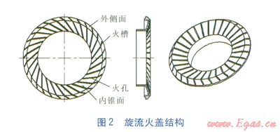 ①燃燒器火蓋設(shè)計成旋流結(jié)構(gòu)
