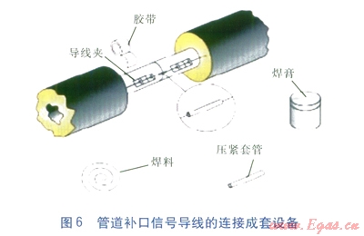 管道補(bǔ)口信號(hào)導(dǎo)線的連接成套設(shè)備(見(jiàn)圖6)包括電纜夾、膠帶、壓緊套管、焊料、焊膏等,除可滿(mǎn)足管道補(bǔ)口信號(hào)導(dǎo)線的連接要求外,還可滿(mǎn)足其他位置信號(hào)導(dǎo)線的連接,以及信號(hào)導(dǎo)線與出線電纜的連接。