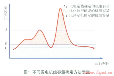 發(fā)電機組的選擇一般是根據(jù)供能對象的冷、熱、電負(fù)荷特性進行確定,一般有以熱定電、以電定熱以及以基本電負(fù)荷定電等幾種方式[1-2]。