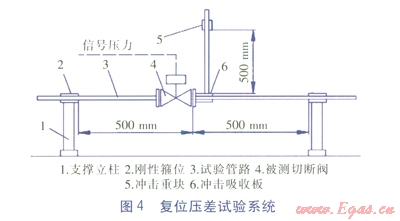 標準CJ/T 335—20l0中的條款6.2.8.1規(guī)定,只有對于進口公稱直徑和出口公稱直徑均不大于150mm的切斷閥,才進行復(fù)位壓差試驗。因為對于進口公稱直徑或出口公稱直徑大于150mm的切斷閥,由于閥體和管道系統(tǒng)的體積和質(zhì)量較大,慣性較大,可預(yù)見的外力因素的擾動對切斷閥機械結(jié)構(gòu)的影響在工程上可以忽略不計。
