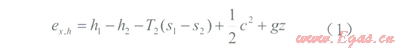 為對(duì)降壓過(guò)程中釋放的壓力能進(jìn)行評(píng)估,本文采用燜分析法[4]。天然氣管網(wǎng)適用于穩(wěn)定流動(dòng)開(kāi)口系統(tǒng),從給定的進(jìn)口狀態(tài)到出口狀態(tài)的穩(wěn)定單位質(zhì)量溫度物流的比用為: