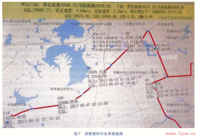 ②準(zhǔn)確預(yù)測(cè)清管器或檢測(cè)器到達(dá)各設(shè)標(biāo)點(diǎn)的時(shí)間,調(diào)度人員及時(shí)通知工藝操作組進(jìn)行次高壓—中壓調(diào)壓站的停供、恢復(fù),減少了停氣對(duì)用戶的影響。也使管道跟球小組的滾動(dòng)式安排更合理,節(jié)省了人力。