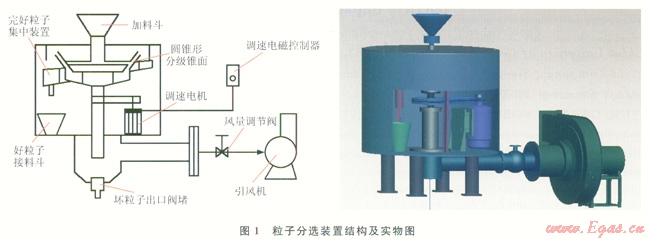 1)筆者提出綜合利用粒子旋轉(zhuǎn)的離心力和外部注入氣流的氣流拖拽力來實(shí)現(xiàn)好壞粒子分離的新思路,設(shè)計(jì)制造出了粒子分選裝置。