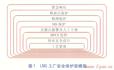 LNG工廠由于物料的易燃易爆特性、產(chǎn)品的低溫深冷特性以及低溫帶來的某些工藝條件的苛刻性決定了其安全的重要性。安全儀表系統(tǒng)(Saletv Instrumented System,簡稱SIS)是通過儀表和自動化技術(shù)實現(xiàn)安全的一種措施,近幾年在我國已建的LNG工廠中廣泛使用,對LNG工廠的安全生產(chǎn)起到了一定的保證作用。但也應(yīng)注意到,從業(yè)者普遍過分依賴SIS,忽視了其他技術(shù)安全相關(guān)系統(tǒng)(也稱其他技術(shù)保護層),造成的結(jié)果一是SIS的動作率偏高,導(dǎo)致停車頻繁,工廠經(jīng)濟性受到損害;二是裝置的安全保護層不完善,過程安全存在一定的隱患。