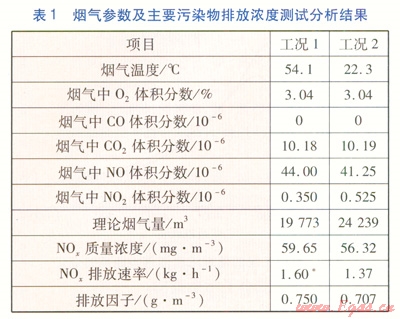 表1中,兩個工況下的煙氣采樣分析結(jié)果是以煙囪總出口處(C點)的數(shù)據(jù)進行對比分析。表1中*為折算值,是將工況1的NOx排放速率折算到與工況2供應相同的供熱量條件下的NOx排放速率。表1中排放因子定義為每1m3天然氣燃燒后排放的NOx的質(zhì)量??梢钥闯?,同樣消耗1m3天然氣,工況2比工況1排放因子減少了5.73%。