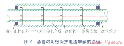 摘 要:分析套管對城鎮(zhèn)燃氣埋地鋼管陰極保護電流產(chǎn)生屏蔽的原因,提出了解決方法。