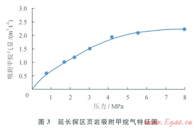 頁巖氣藏為一個近封閉的獨立系統(tǒng),除少量氣體以滲濾、擴散等形式散失外,大部分氣體賦存在頁巖內(nèi)部,因此頁巖氣藏大多具有異常壓力,壓力越大則頁巖吸附氣體的能力越強”]。從烴源巖的熱演化過程上看,在較淺埋深(熱演化程度低)時,頁巖以生物氣為主,生氣量往往小于其上下泥巖的生氣量,此時可形成異常低壓;在較大埋深時(熱演化程度較高),頁巖以生成熱解氣為主,生氣量較大,氣體膨脹可形成異常高壓。盡管頁巖氣藏的高壓與低壓并非絕對,如埋深較大時,頁巖的上覆或下伏地層其液態(tài)烴熱解成氣會導致壓力升高,頁巖氣藏則表現(xiàn)為異常低壓;頁巖氣藏發(fā)生構(gòu)造沉降或抬升時,氣藏壓力滯留,也可能形成異常高(低)壓力。但是,無論哪種作用機制都很難解釋頁巖層壓力小于靜水壓力。而延長探區(qū)長7段頁巖地層壓力普遍小于靜水壓力(地層壓力系數(shù)小于l)。