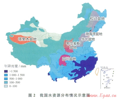 此外,在我國(guó)頁(yè)巖氣富集的山區(qū),地表?xiàng)l件較差,水資源匱乏,大規(guī)模水力壓裂造成的環(huán)境污染和資源浪費(fèi)等問(wèn)題也不容忽視,以美國(guó)2011年頁(yè)巖氣開(kāi)發(fā)數(shù)據(jù)為例,根據(jù)美國(guó)能源部統(tǒng)計(jì),每一口頁(yè)巖氣鉆井平均用水量高達(dá)1.5×104m3[7]。預(yù)計(jì)全年頁(yè)巖氣水平井鉆井?dāng)?shù)為8000口,則一年的用水量至少為l.2×l08m3。我國(guó)是一個(gè)干旱缺水嚴(yán)重的國(guó)家,人均年可利用淡水資源量?jī)x為900m3,不到美國(guó)的l/5,并且分布極其不均,統(tǒng)計(jì)到20世紀(jì)末,全國(guó)600多座城市中,已有400多個(gè)城市存在供水不足問(wèn)題,其中比較嚴(yán)重的缺水城市達(dá)ll0個(gè),全國(guó)城市缺水總量為60×l08m3。如圖2所示,我國(guó)頁(yè)巖氣田的分布與缺水地區(qū)的分布重合較多。在水量相對(duì)充裕的長(zhǎng)江流域,只在四川[8]和江漢盆地發(fā)現(xiàn)了頁(yè)巖氣,而在西北、華北地區(qū)[9],頁(yè)巖氣儲(chǔ)量豐富,水資源卻相當(dāng)緊張[10]。與此同時(shí),35%的壓裂液將返排至地表,若處理不當(dāng)將給環(huán)境帶來(lái)巨大的污染,同時(shí)也增加了開(kāi)發(fā)成本[11]。因此,我國(guó)頁(yè)巖氣資源的高效可持續(xù)開(kāi)發(fā),不能單純借鑒北美大規(guī)模水力壓裂的生產(chǎn)模式,需要大力發(fā)展高效環(huán)保、低水量消耗的壓裂液體系以及配套的壓裂設(shè)備和技術(shù)方法。