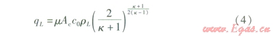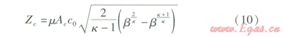 對于高壓天然氣輸送管道,當(dāng)出現(xiàn)開裂泄漏造成較大量的天然氣泄漏時(shí),破裂口天然氣流動(dòng)將會(huì)較長時(shí)間都處于臨界流動(dòng)狀態(tài),即壓力比b≤bc。