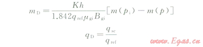 氣體具有強(qiáng)可壓縮性,其黏度(mg)、偏差因子(Zg)、體積系數(shù)(Bg)等都是關(guān)于壓力的強(qiáng)非線性函數(shù),如果直接對(duì)氣體滲流控制方程中的擴(kuò)散系數(shù)進(jìn)行強(qiáng)行近似必然會(huì)引起較大的誤差。使用擬時(shí)間函數(shù)(tg)能夠?qū)怏w滲流問(wèn)題等效轉(zhuǎn)化為液體滲流問(wèn)題,同時(shí)改進(jìn)了“強(qiáng)行近似擴(kuò)散系數(shù)(1/jmgcg)為常數(shù)”的假設(shè)條件,結(jié)果必然使得理論描述更接近于礦場(chǎng)實(shí)際情況,也方便液體研究領(lǐng)域內(nèi)成果的參考和借鑒。其中,擬時(shí)間定義為: